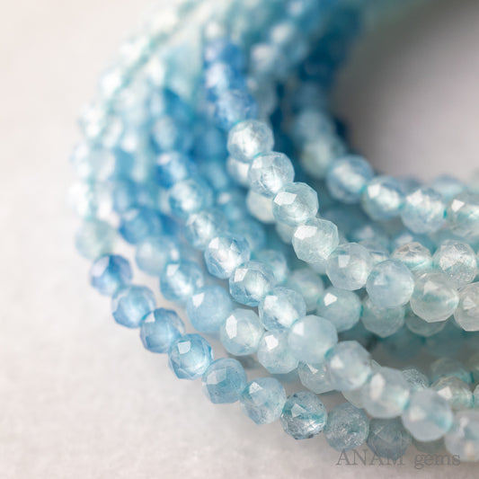 【つるんと透明】モルガナイト・アクアマリン シェードグラデーションカラー プレーンボタンカット(ロンデル) 40cm【サンタマリアカラー入り】