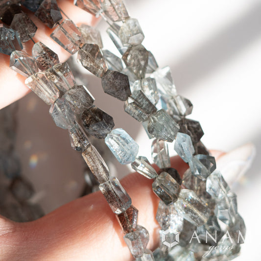 モスアクアマリン タンブルカットビーズ|深海のようなグリーンブルーと苔の景色を閉じ込めて