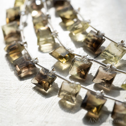 レモンスモーキークォーツ ランダムファセットカット シングルホール(1穴)