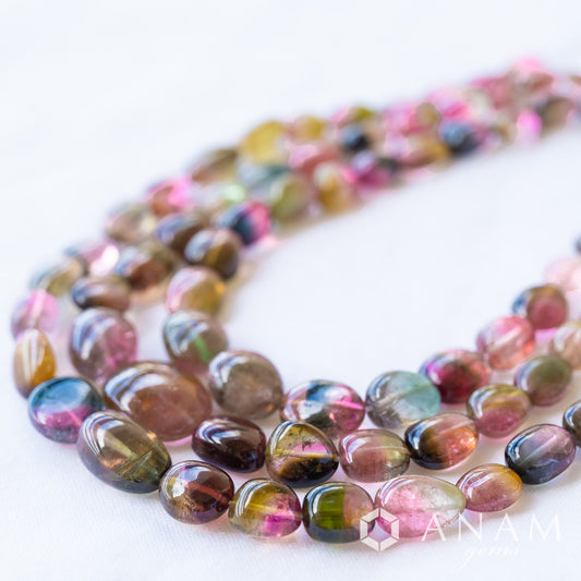 マルチカラー トルマリン スムース ボタン(ロンデル)1連(約40cm)