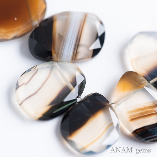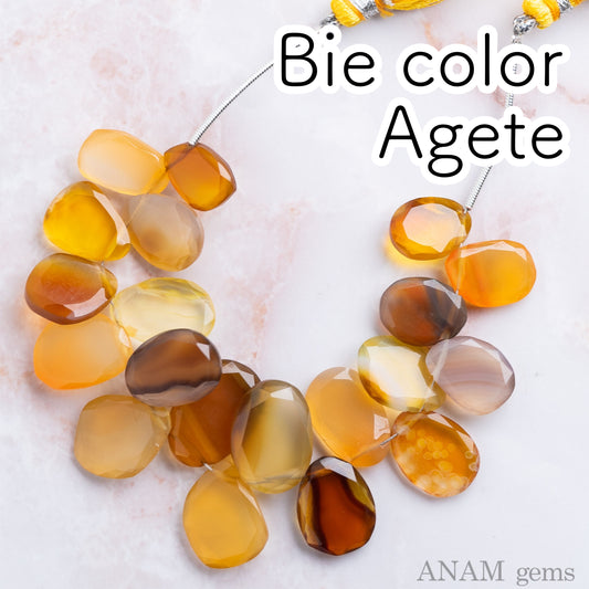 バンテッドバイカラーアゲートMOMO花スライス【イエロー-ブラウン】