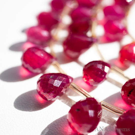 【世界一有名なルビーの産地】【モゴック産】 ルビー スムース ドロップ ビーズ