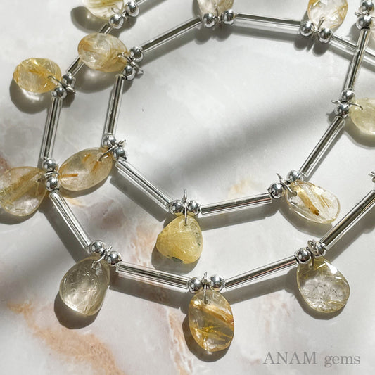 イエロールチルクォーツ ローズカット スライス ビーズ