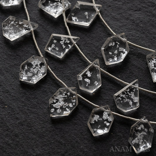 シルバーホイルクォーツダブレット スライスカットビーズ