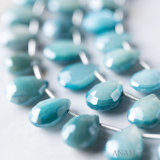 Blue Moonstone (Rainbow Moonstone) Random Face Cut W Hall (2 Holes)