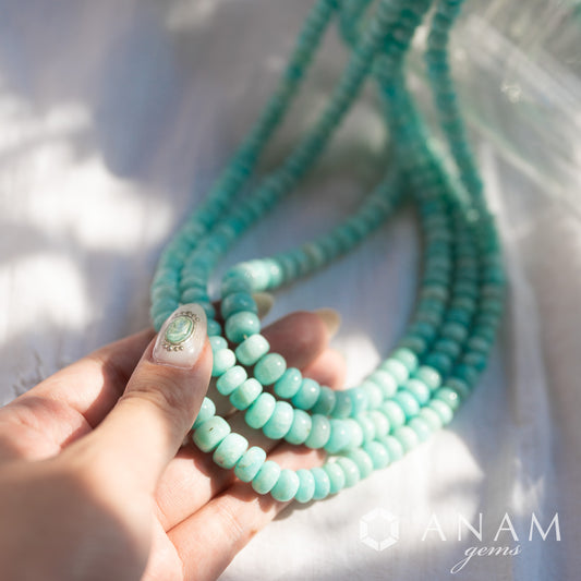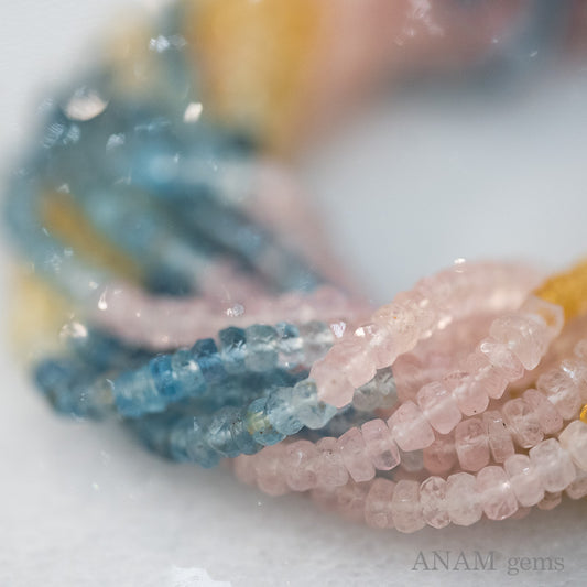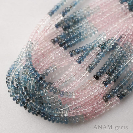 [Tsurun and Transparent] Morganite Aquamarine Shade Gradient Color Plain Button Cut (Rondel) 40cm [Santa Maria Color]