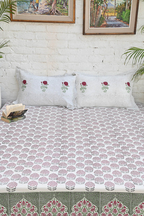 【ブロックプリント】ムガールの芸術 ベッドリネン3点セット【ジャイプール伝統工芸】