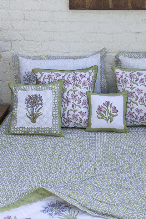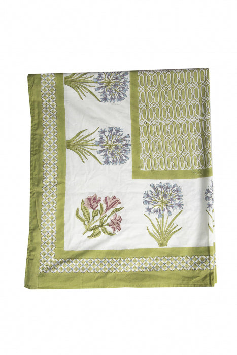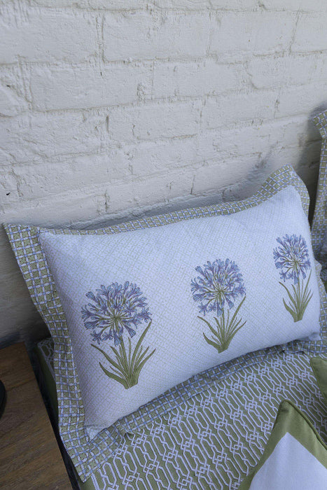 【ブロックプリント】ユリとアガパンサス ベッドリネン3点セット【ジャイプール伝統工芸】