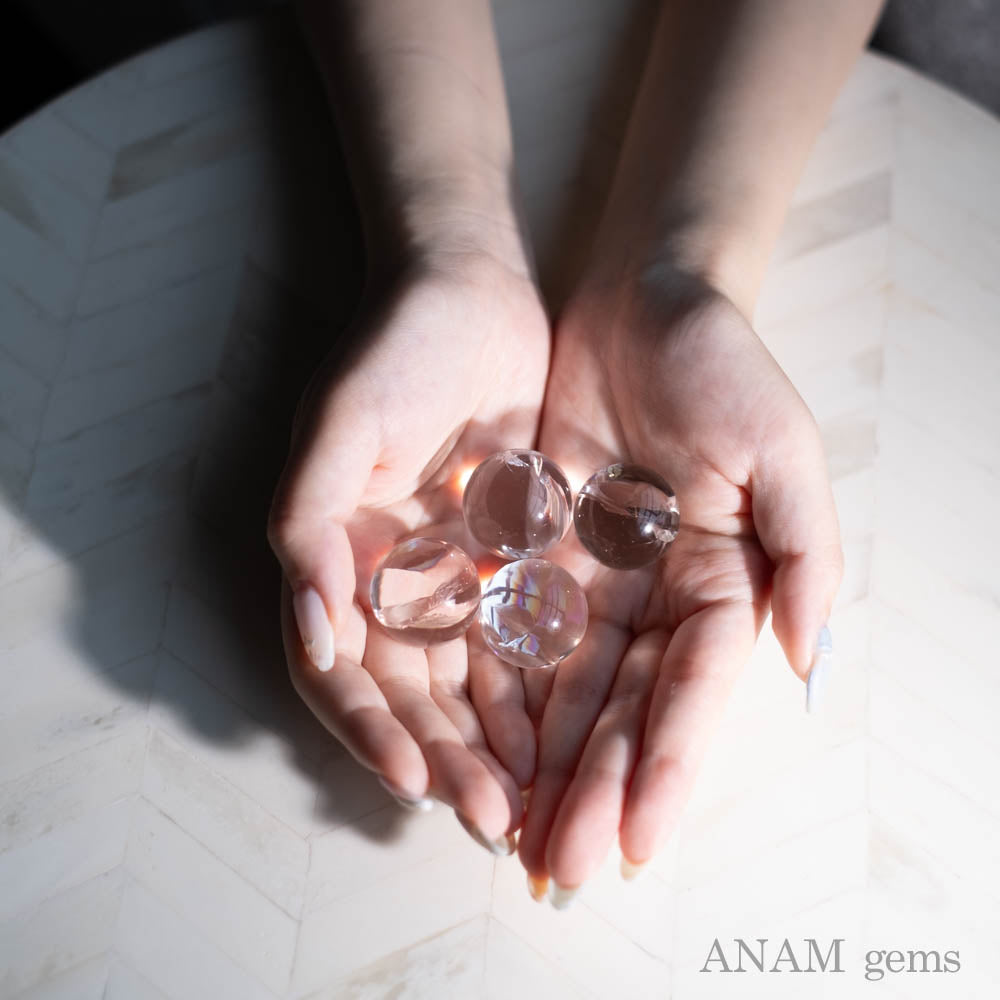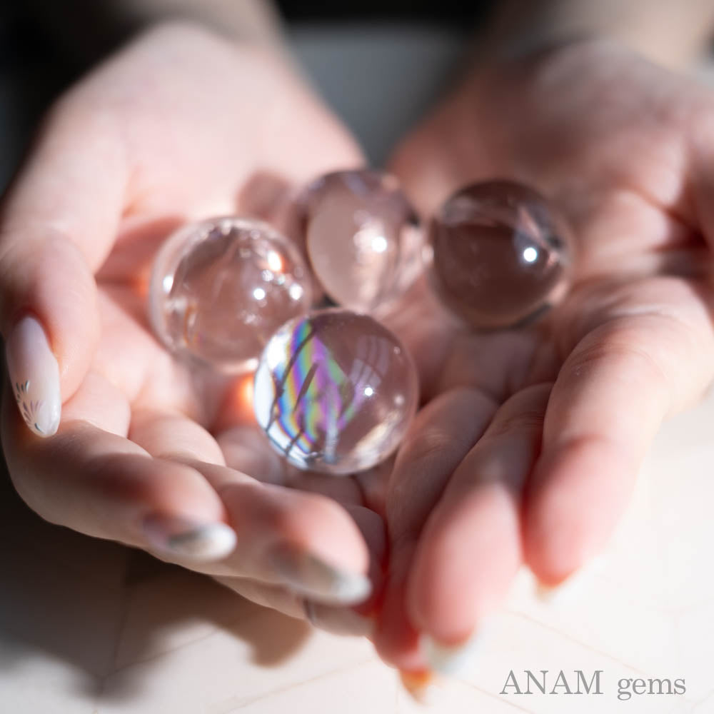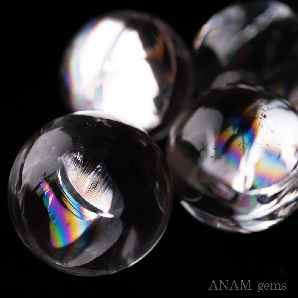 透明感が高いクォーツに虹のような光がふわっと浮かび上がり、とても美しいです。