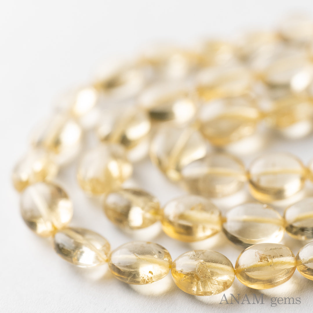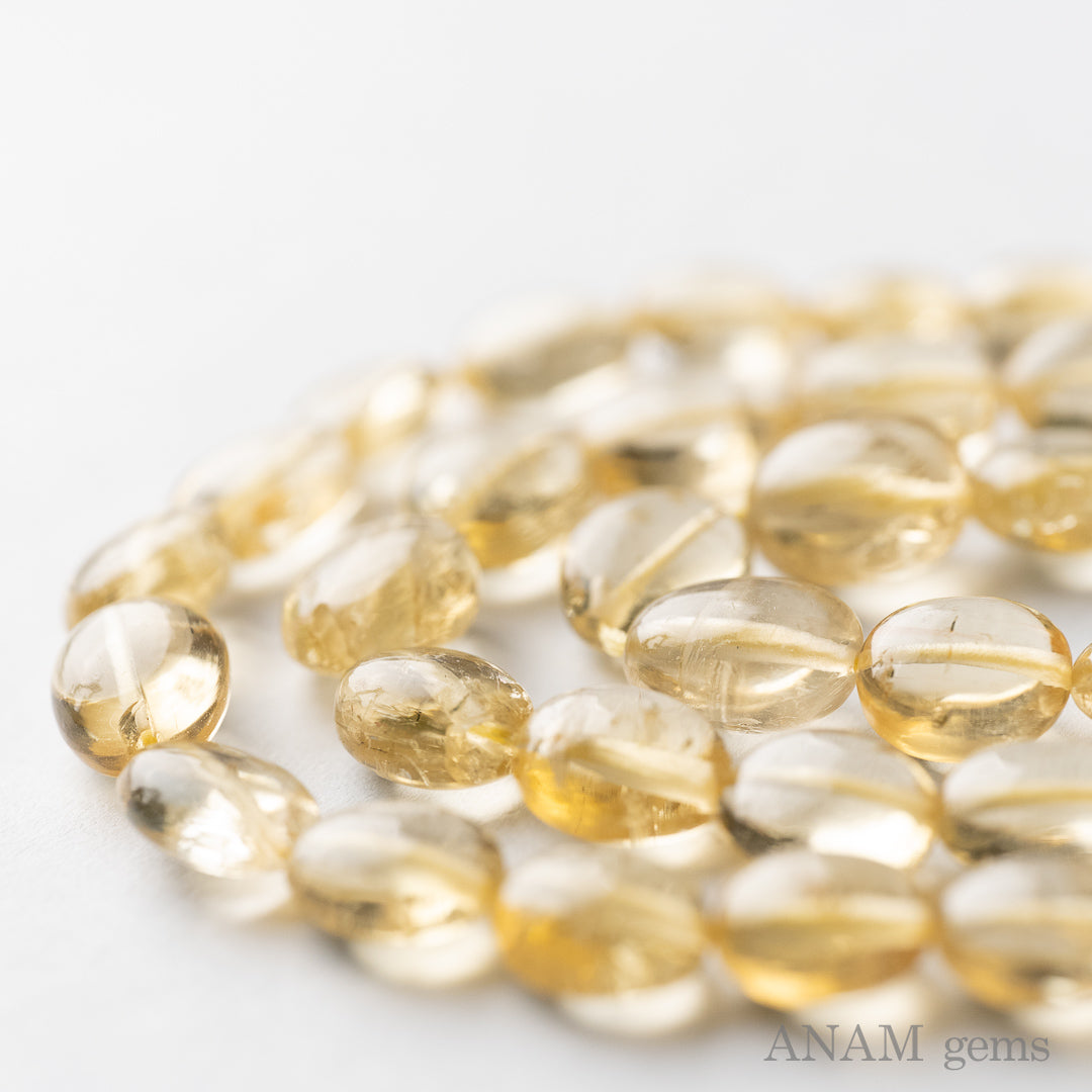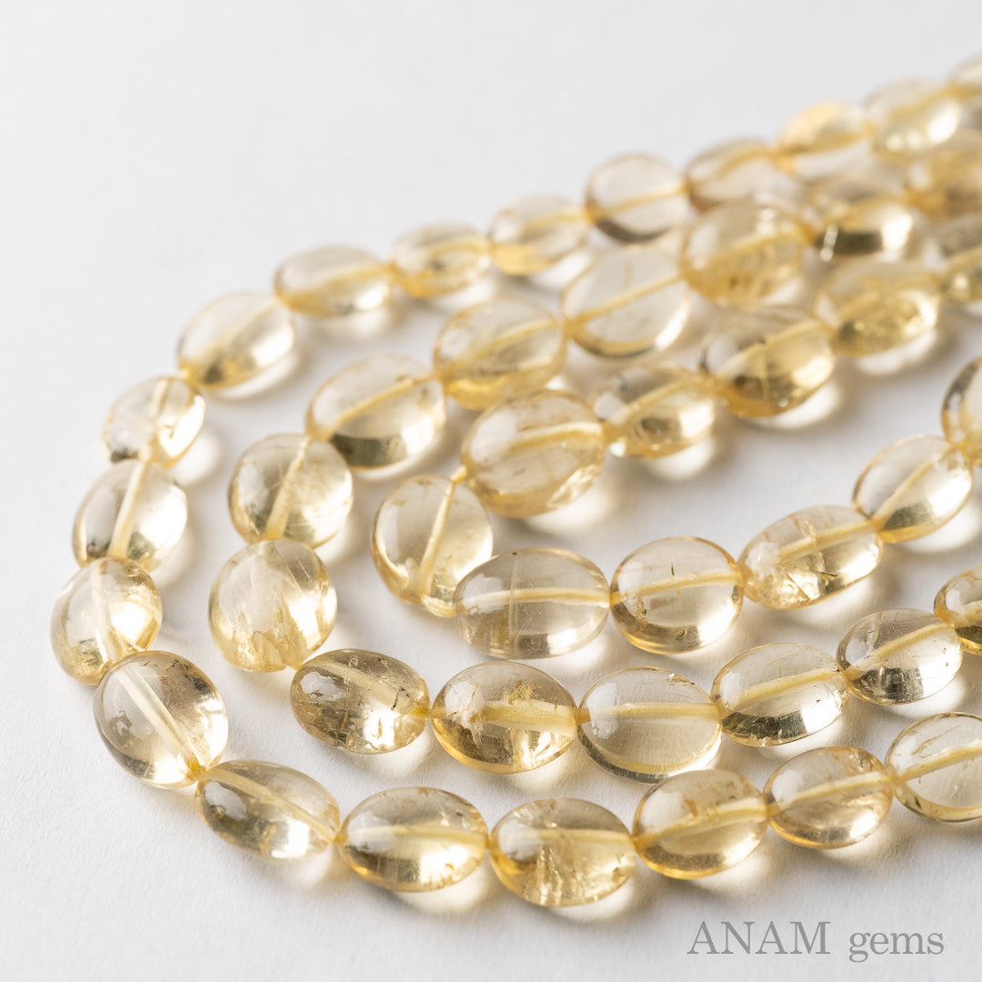 こちらの連は、透明感のある明るいイエローで、厚みと艶をもったオーバルシェイプ。