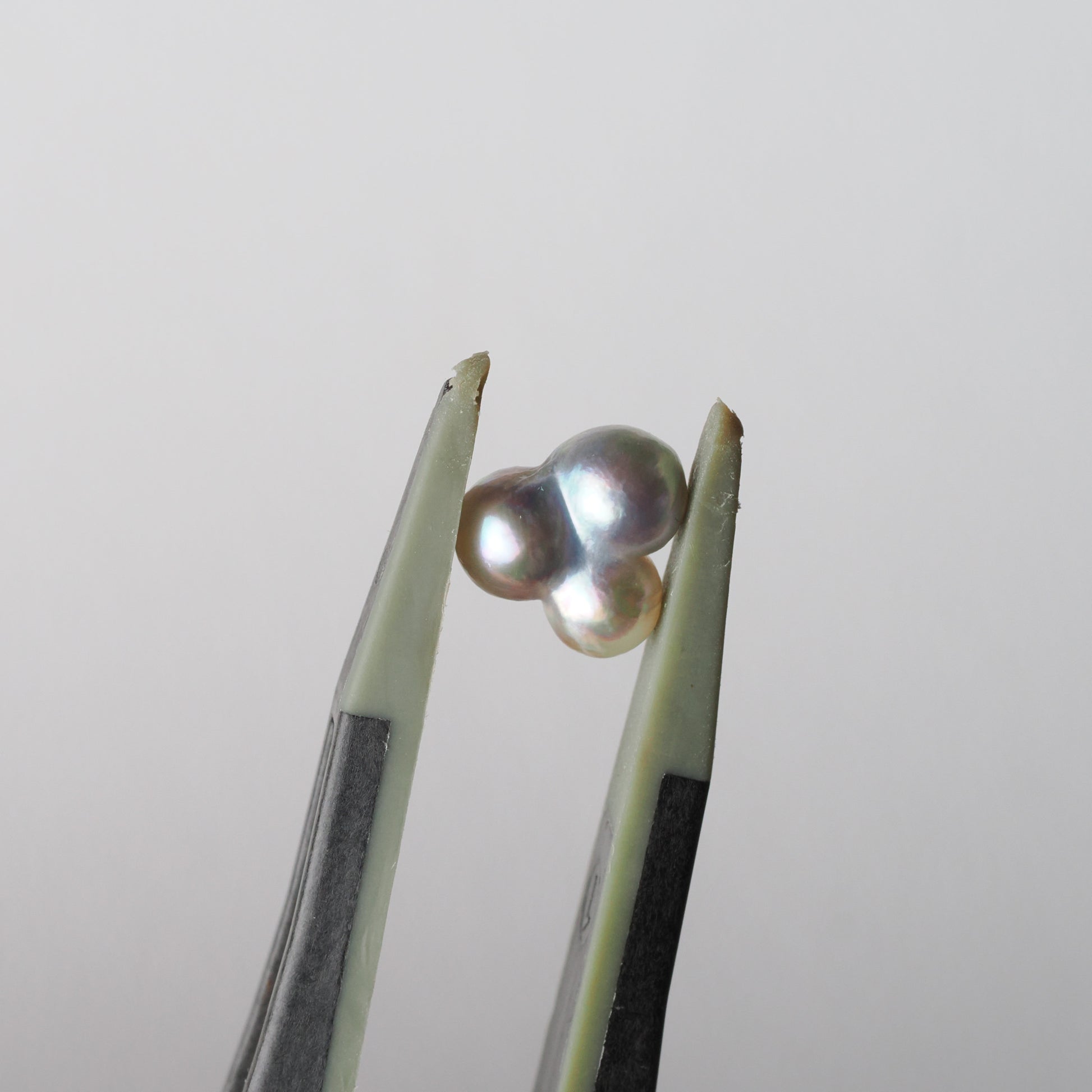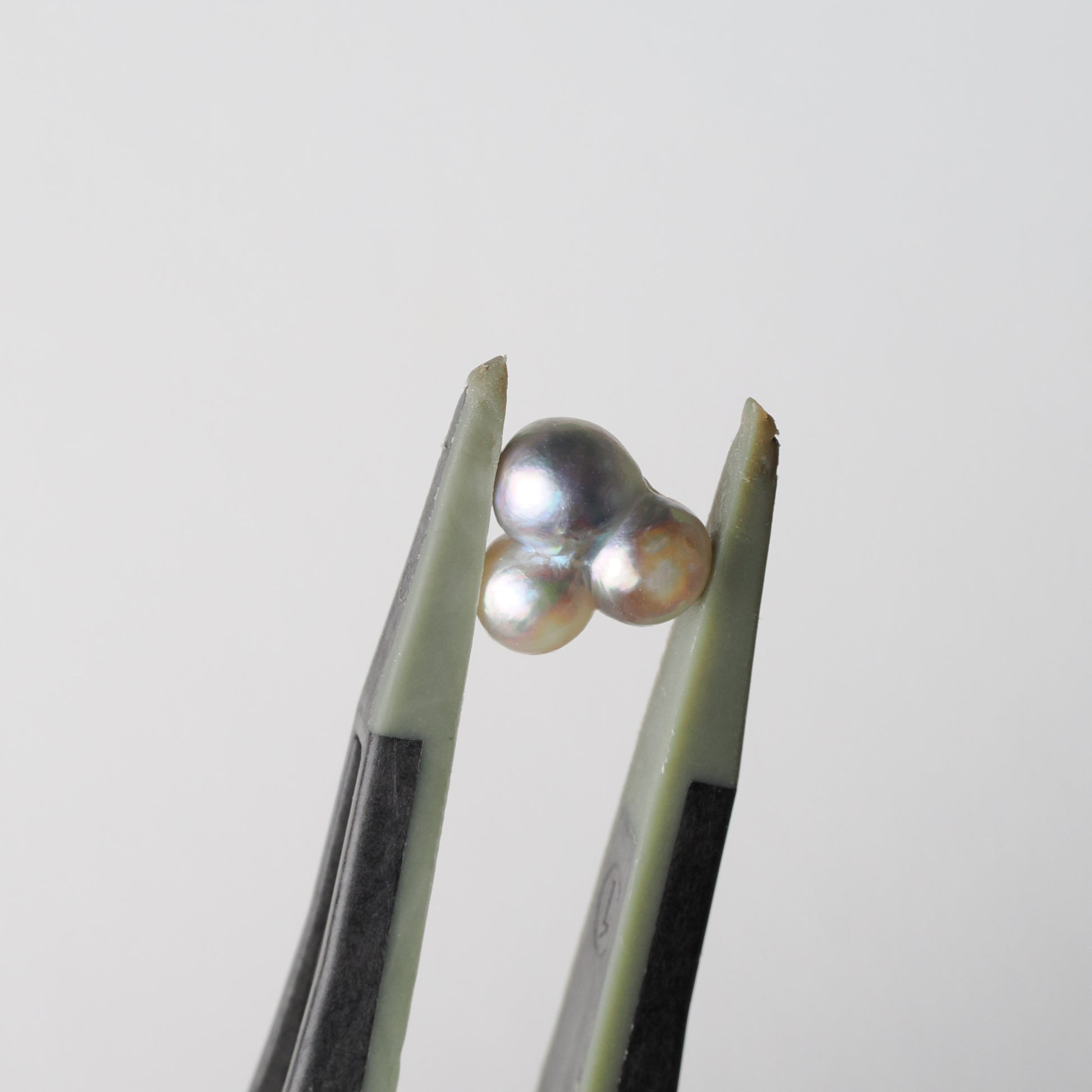 三つの珠が寄り添うように育った、極めて珍しい三つ子あこやパールのルースです。