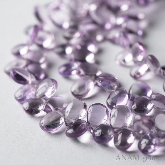 ピンクアメジスト プレーンペアシェイプビーズ|やわらかな淡色が魅力の天然石