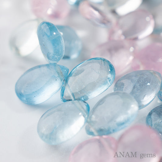 Aquamarine Morganite Mix 부드러운 쌍 모양 구슬