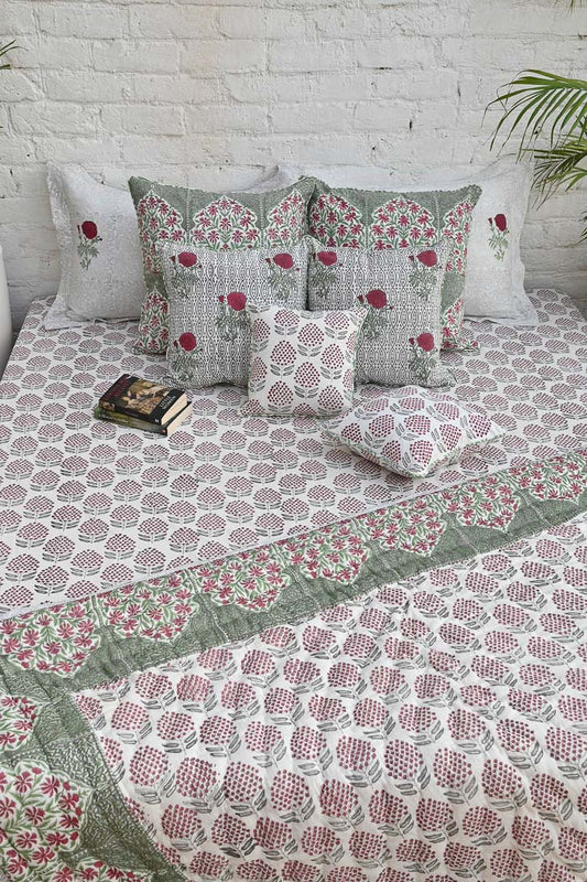【ブロックプリント】エデンの園 ベッドリネン3点セット【ジャイプール伝統工芸】