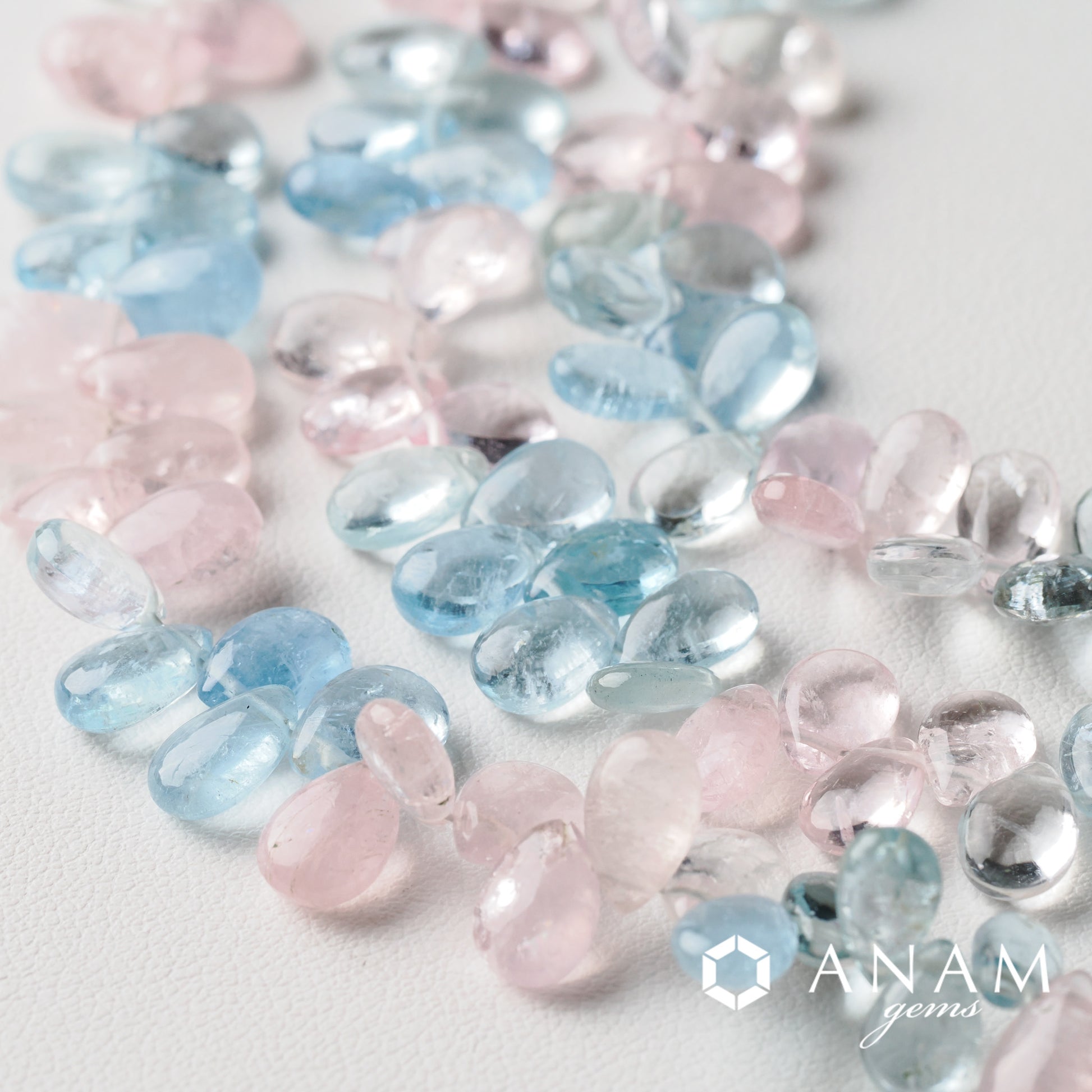 Aquamarine Morganite Mix 부드러운 쌍 모양 구슬.