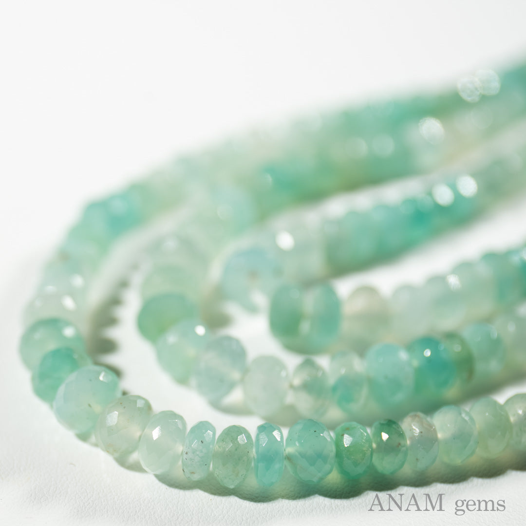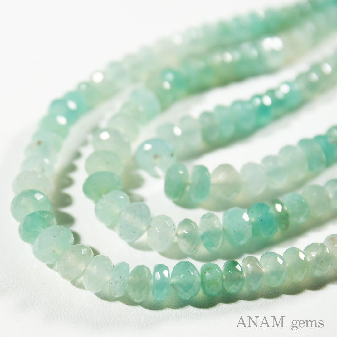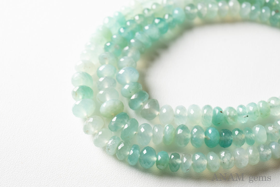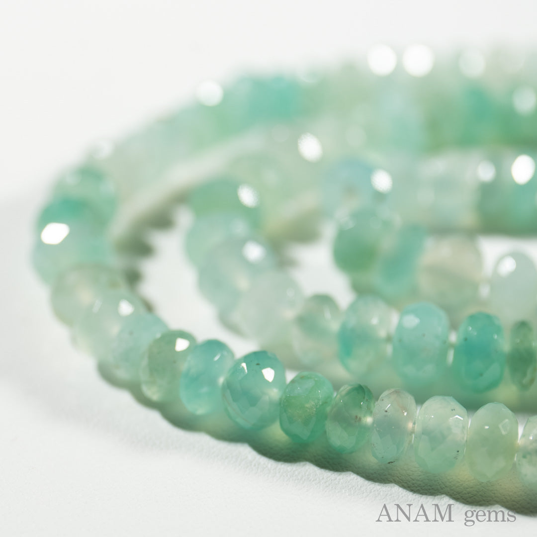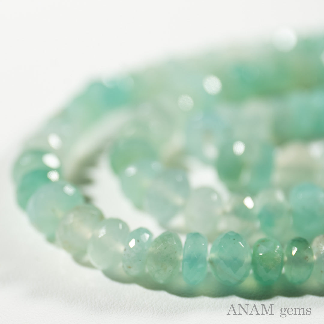 アクアプレーズ ロンデルビーズ|海の泡のように揺らめく淡青と白の天然石