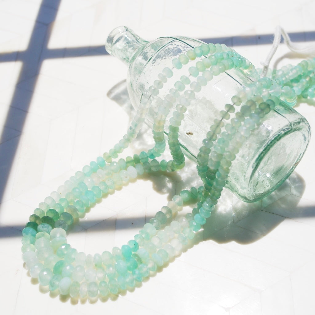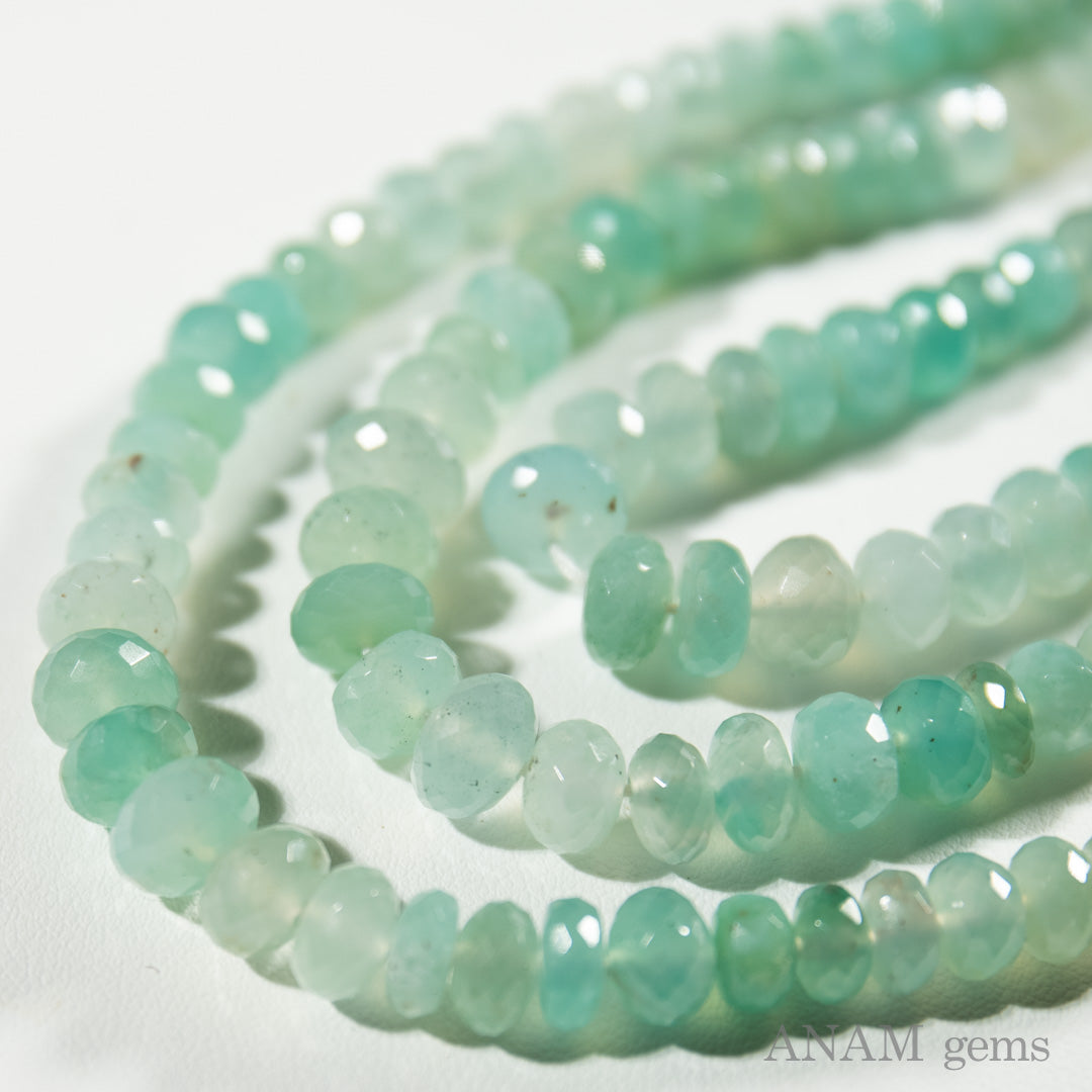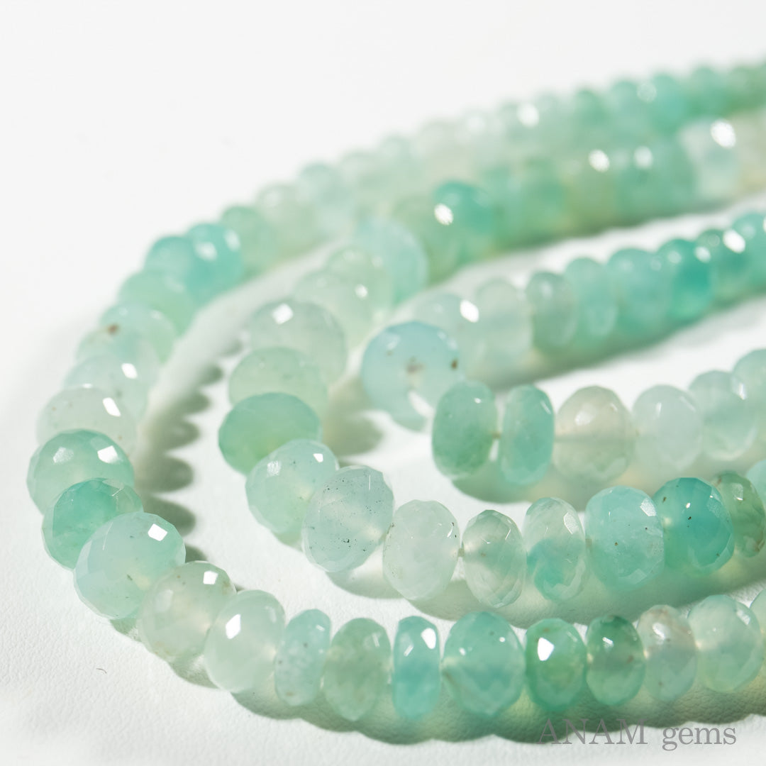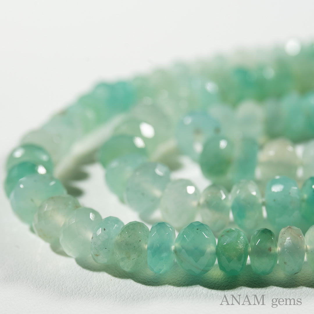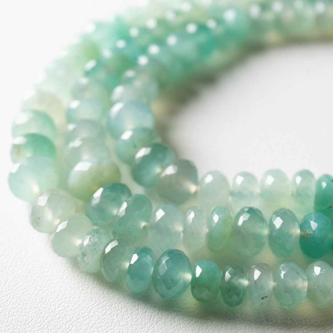 アクアプレーズ ロンデルビーズ|海の泡のように揺らめく淡青と白の天然石